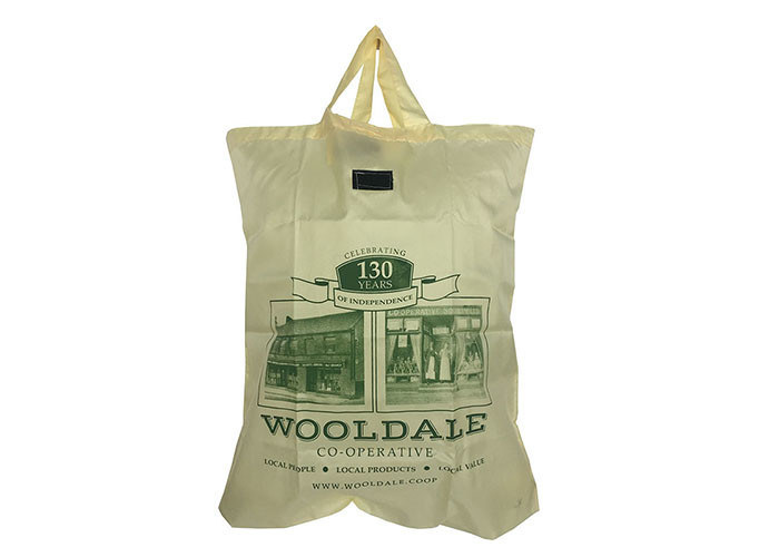 | نام ماده | 210T RPET سفارشی چاپ پلی استر بسته بندی کیسه حامل خریدار Foldaway COOP |
