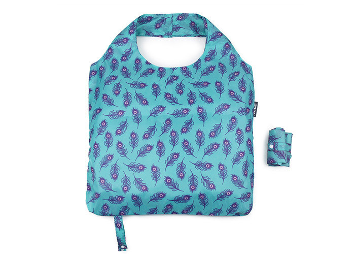 برگ آبی زیبا با برچسب لوگو و دکمه 190t کیف خرید انعطاف پذیر سازگار با محیط زیست
