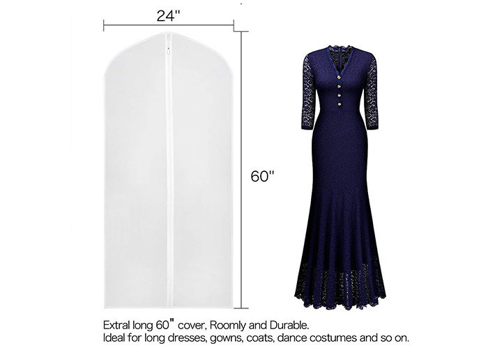 کیسه لباس سفید شفاف PEVA لباس لباس ضد گرد و غبار پوشاک پوشاک 24 ′′ x 60 ′′